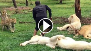 نمر ينقذ حارس حديقة حيوان من هجوم مباغت لفهد شرس.. فيديو