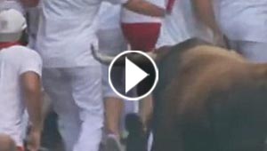 عجوز يتعرض لنطحة ثور عندما هب لانقاذ امرأة.. فيديو