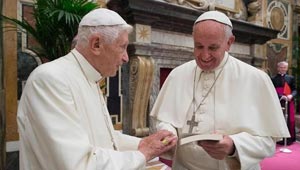 البابا السابق يقف الى جانب الحالي في صورة نادرة جمعت ..