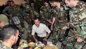 الاسد يتناول الافطار مع جنوده: هذه اطيب لقمة في حياتي!!