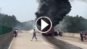 مصرع 35 سائحا في اشتعال النار بحافلة في الصين.. فيديو