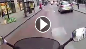 غباء سائق مركبة يتسبب بتصادم مع دراجة نارية.. فيديو