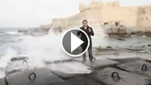 موجة عاتية تضع مراسل بالجزيرة في موقف محرج.. فيديو