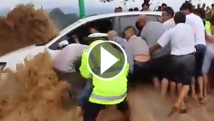 فيديو مثير.. سائق ينقذ ام وابنتيها جرفهن الفيضان ويعترضهن ..