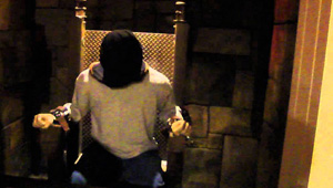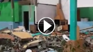لقطات مخيفة لام وطفليها يهربون قبل ثوان من انهيار سقف ..