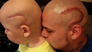 والد يدعم طفله المصاب بالسرطان بوشم غير تقليدي