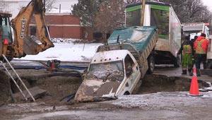 حدث في كندا.. حفرة عملاقة تبتلع شاحنة