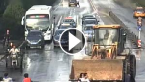فيديو من عالم الاكشن.. جرافة تدمر كل شيء والشرطة تطلق على ..