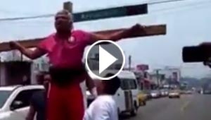 مكسيكي يحتج على نتائج الانتخابات بصلبه نفسه!!