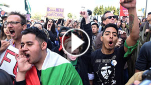 استقبال ترامب بالبيض والصدور المكشوفة وتهريبه من باب ..
