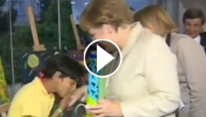 شاهد كيف استقبل طفل سوري ماما ميركل بالقبلات