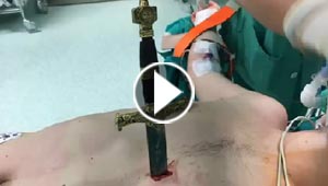 مشهد مروع لاطباء ينتزعون سيفا من صدر رجل اراد الانتحار