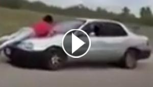 رجل يربط زوجته على مقدمة السيارة وينطلق بها لانها خانته.. ..