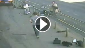 سرعة خاطر اب تنقذ ابنه الرضيع من عجلات سيارة مسرعة.. شاهده