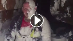 فرملة مفاجئة تتسبب بطلاء عامل باللون الابيض.. فيديو