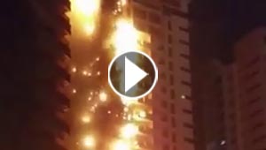 فيديو يظهر النيران تلتهم برجا سكنيا في امارة عجمان