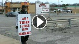 رجل يحمل يافطة يعترف فيها بانه لص عوضا عن السجن