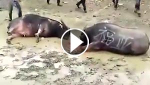 اصطدام عنيف بين جاموستين يودي بحياتهما/ شاهده