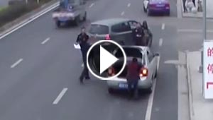 سائق تاكسي يدهس راكبا وهو يقود الى الخلف ويفر هاربا.. ..