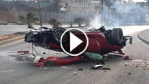 هكذا تحطمت سيارة البورش في لبنان بسبب السرعة الجنونية! ..