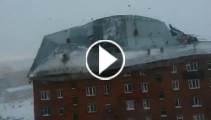 فيديو مثير.. العواصف تطيح بسقف بناية في دودينكا الروسية