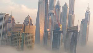 صور الضباب الكثيف يخفي ابراج دبي