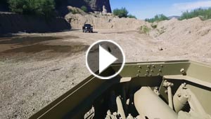 مشهد مثير.. سيارة جيب رباعية الدفع تصمد امام مدفع مضاد ..