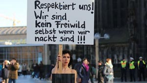 احداث التحرش في المانيا تدفع فنانة سويسرية للتعري ..