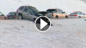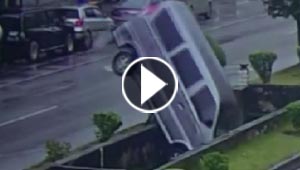اعجوبة توقف سيارة عند حافة هاوية بعد ان فقد السائق السيطرة ..