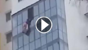 عامل نظافة يعلق على نافذة بناية في الطابق 15 وينجو باعجوبة