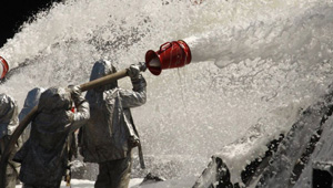 فريق اطفاء صيني يغمر طائرة غير مشتعلة برغوة اطفاء ..