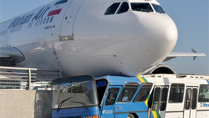 حادث غريب.. طائرة ركاب تهبط على سطح حافلة وتسحقها