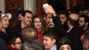 صور الاسد وعقيلته خلال زيارتهما لكنيسة خلال الاحتفال ..