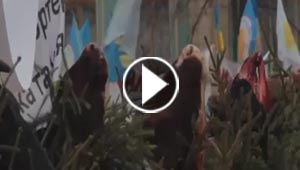 مزارعو كييف يحتجون باشجار الميلاد ورؤوس البقر.. شاهد