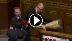 عراك برلماني.. أهداه باقة زهور ثم حمله وأطاح به عن المنصة