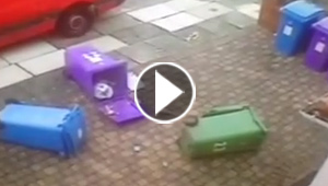 صناديق القمامة تتحول الى كائنات متطايرة في الهواء.. لقطات ..