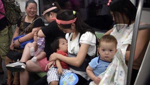 صورة لامرأة ترضع طفلها في قطار الانفاق تثير جدلا في الصين