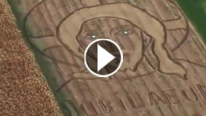 فنان ايطالي يرسم (معاناة المسيح) في حقل باستخدام جرار