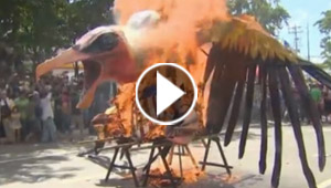 متظاهرون يحرقون دمية النسر الامريكي في قمة اوبيك بحضور ..