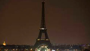برج ايفل يتشح بالسواد حدادا على القتلى والعالم ينتصر ..