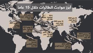 خارطة تسلط الضوء على ابرز كوارث الطائرات في السنوات ..