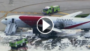 فيديو للنار تشتعل بمحرك طائرة لحظة اقلاعها من مطار ..