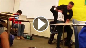 شرطي امريكي يقتحم غرفة تدريس ويسحب طالبة منها بالقوة!!