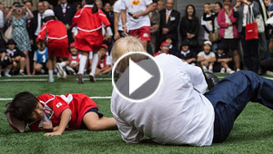 فيديو مضحك.. عمدة لندن يسقط بقوة وهو يلعب الروجبي مع أطفال