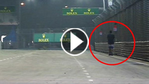 شاب متهور ضبط وهو يتجول على مسار سباق السيارات.. شاهد