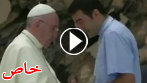 فيديو البابا يفاجئ العالم وينهض لمعانقة كاهن سوري اهداه رصاصة ..