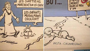 شارلي ايبدو الفرنسية تسخر بعنصرية من الطفل السوري الغريق