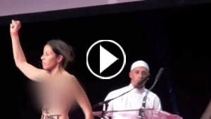 امرأتان بصدر مكشوف توقفان مؤتمرا اسلاميا في باريس.. شاهد