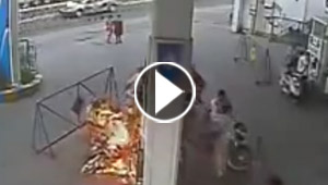 هاتف محمول يتحول الى كرة لهب بعد اشتعاله في محطة وقود