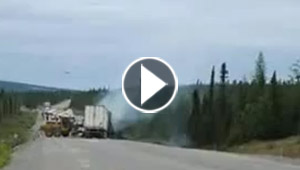 السماء تنقذ شاحنة مشتعلة وتقدم لها النجدة المنشودة.. شاهد ..